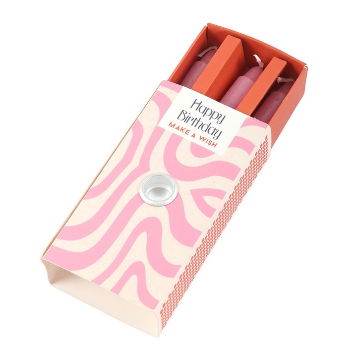 These 3 colourful pink candles are the ultimate portable party, ensuring the birthday boy or girl never misses out on making a birthday wish! Compact and cheerful, they are perfect for celebrating birthdays on the go or sending a little “birthday in a box” to someone special. Made from unscented paraffin wax. Approx 1 hour burn time per candle. Never leave a lit candle unattended. Product Size: H10.5cm x W5.5cm x D2.5cm.