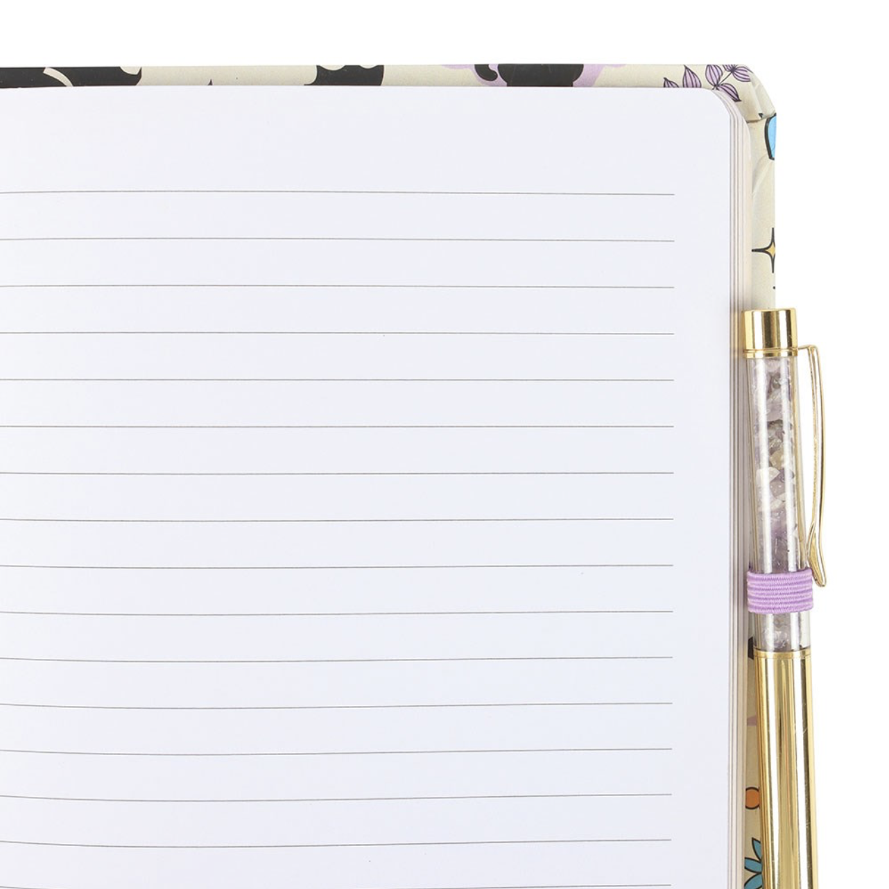 This A5 notebook is perfect for scribbling notes and ideas, featuring a playful black cat print and a matching amethyst chip pen. An ideal gift for feline-loving writers and witches alike. 100 sheets / 200 lined pages. Designed