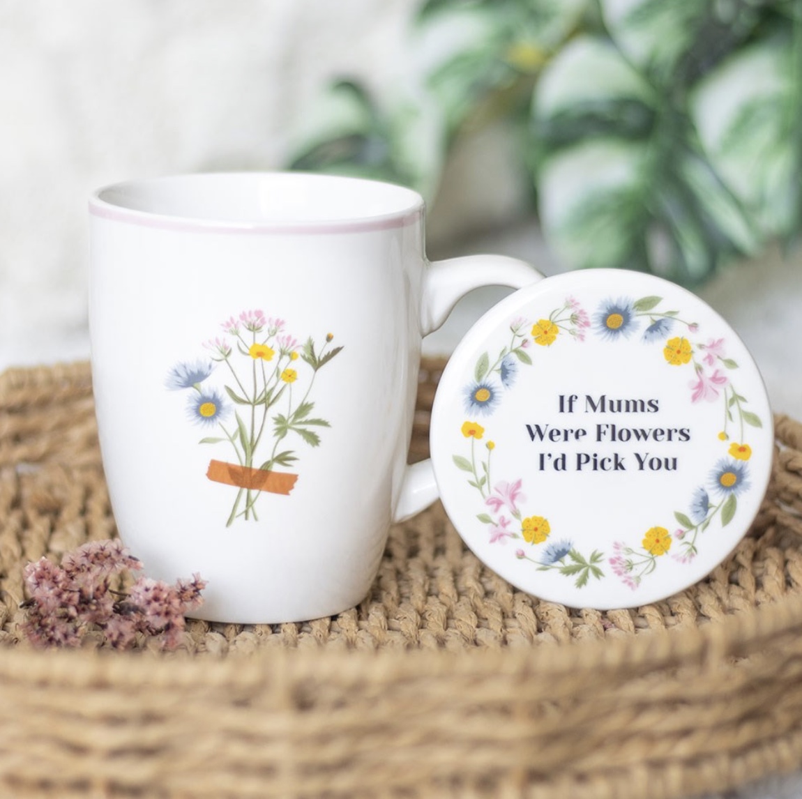A heartwarming and blooming with love, this ceramic mug and coaster set makes the perfect Mother’s Day gift. Adorned with a bouquet of spring flowers, the mug pairs beautifully with the matching coaster featuring a sweet message “If Mums Were Flowers, I’d Pick You”. A charming duo for brightening Mum’s day with every sip. 350ml capacity. Dishwasher and microwave safe.
