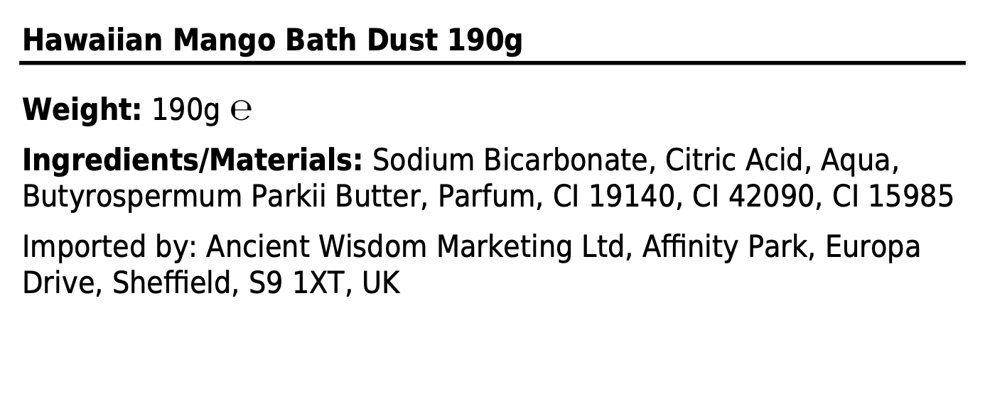 Transport your customers to a tropical paradise with Hawaiian Mango Bath Dust. Each 190g pack is infused with the sweet, juicy aroma of ripe mango, creating a luxurious soak that refreshes the senses, relaxes the body, and leaves skin feeling soft, smooth, and lightly fragranced.