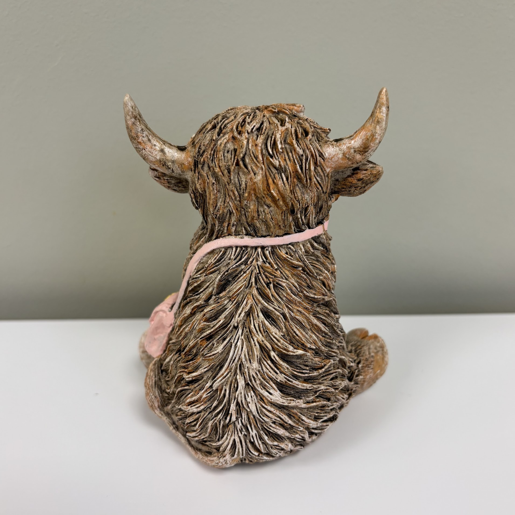 An adorable resin highland cow carrying a pretty pink cross body bag. A cute addition to any home wanting a touch of country charm in the home.