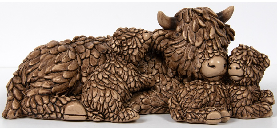 Introducing Hughie, the adorable Highland Cow ornament with his sweet babies by his side.