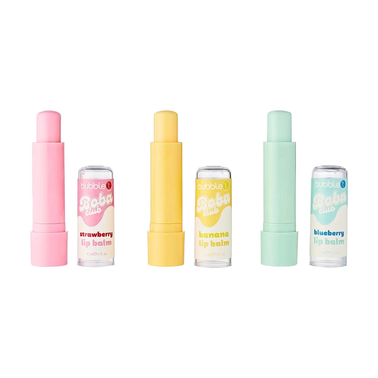 Indulge your lips with the Bubble T Boba Club Lip Balm Gift Set – a playful, tea-inspired trio that delivers hydration and a burst of sweet flavor. Featuring three irresistibly scented lip balms – strawberry, banana, and blueberry – this set is perfect for keeping your lips soft, smooth, and moisturised all day long. Strawberry, Banana & Blueberry. 3 x 4.5g.
