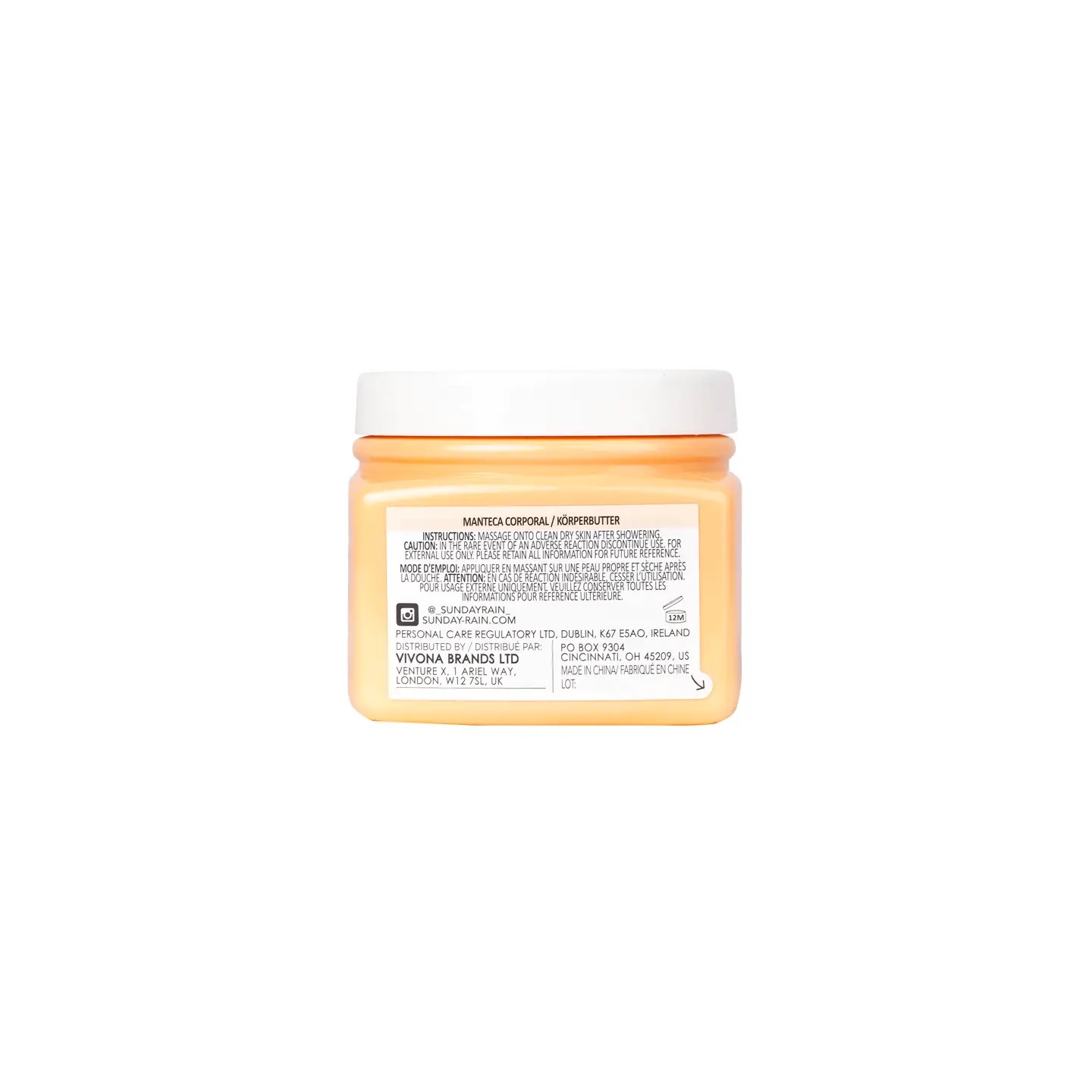 Ingredients: Aqua (Water), Glycerin, Cetearyl Alcohol, Glyceryl Stearate, Paraffinum Liquidum (Mineral Oil), Isopropyl Myristate, Cyclopentasiloxane, Dimethicone, Mangifera Indica (Mango) Seed Butter, Cocos Nucifera (Coconut) Oil, Phenoxyethanol, Carbomer, Parfum (Fragrance), Sodium Hydroxide, Ethylhexylglycerin, Coumarin, Limonene, Linalool, CI 15510 (Orange 4).