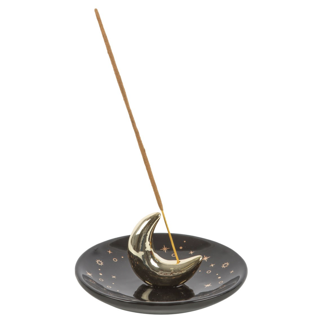 Illuminate your senses with this ceramic incense holder shaped like a crescent moon. Elegant and dreamy, this ceramic holder will look beautiful on a side table or nightstand while catching falling ash.