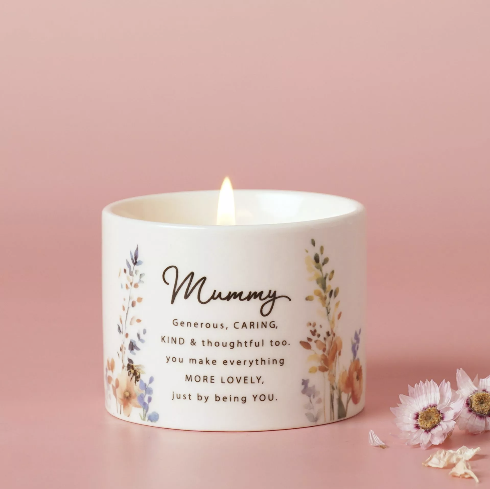 The Cottage Garden Ceramic Candle 100g – Mummy is designed to look as good as it glows. The ceramic holder features a floral watercolour print with uplifting wording, turning a simple candle into a standout piece for shelves, tables, or bedside spaces. Ideal for Mother’s Day, birthdays, or as a quick home update, it’s a decorative accessory that blends soft colour, modern floral design, and everyday practicality. Burn Time: 25 hours